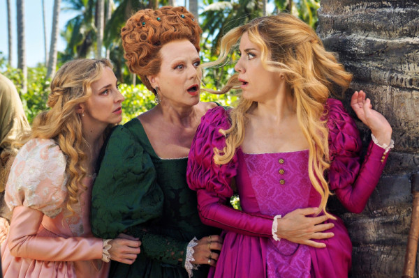 El problema es que eligen una isla en la que desde hace veinte años viven un leñador con sus dos hijos que huyeron allí para no volver a ver una mujer en su vida. En cuanto la Reina y las dos princesas descubren que no están solas, temiendo por su vida, se visten de hombres para protegerse.